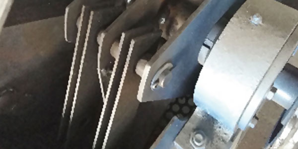锤片采用碳结钢制成可对木屑进行多次撞击破碎,进而提高破碎率,并且锤片可以双面使用,一面破损后,用户可以自行调换锤片,但是锤片更换时只能换在同个位置,不能相互调换,以免影响机器的动平衡,双面使用,降低使用成本。